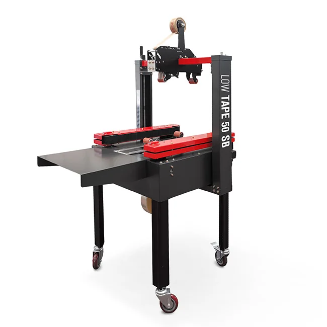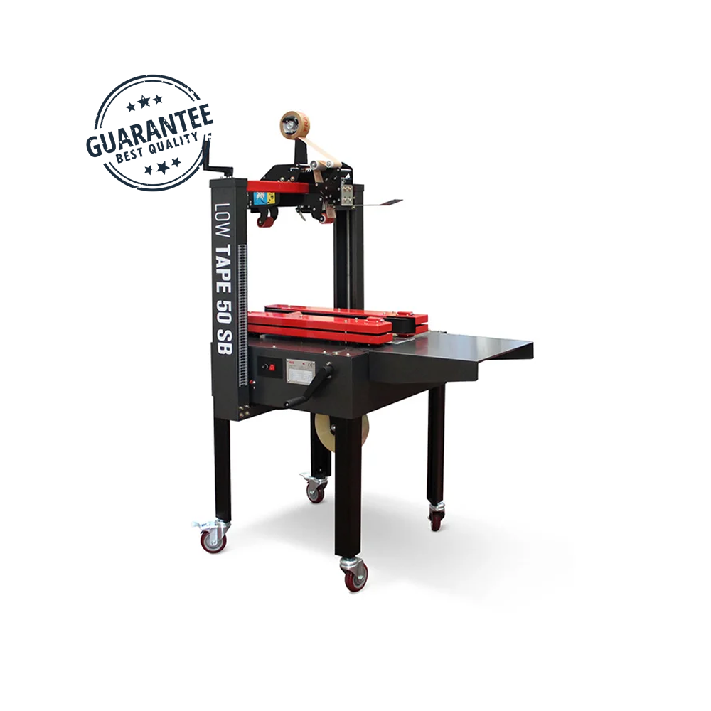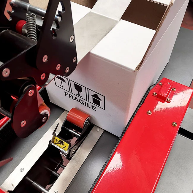 Makinë gjysmë-automatike për mbylljen e kutive të kartonit, e cila aplikon shirit ngjitës në pjesën e sipërme dhe të poshtme të paketës, duke garantuar mbyllje të fortë, të shpejtë dhe uniforme. Pajisja përshtatet lehtësisht me kuti me dimensione të ndryshme, duke ofruar fleksibilitet dhe efikasitet në procesin e paketimit.