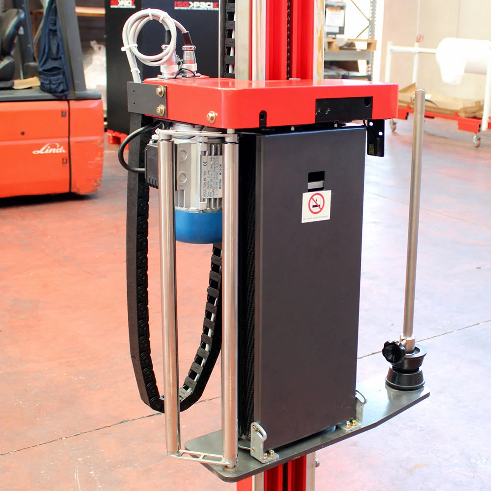 Është një makinë semi-automatike për mbështjelljen e paletave me film stretch, e projektuar për ngarkesa të rënda dhe voluminoze që kërkojnë paketim të sigurt dhe të qëndrueshëm. Pajisja përdor një krah rotues që rrotullohet rreth paletës, duke e mbështjellë ngarkesën pa e lëvizur nga vendi. Kjo e bën zgjidhje ideale për ambiente industriale, logjistike dhe magazinimi, ku nevojitet mbështjellje e shpejtë dhe efikase pa kufizim peshe.