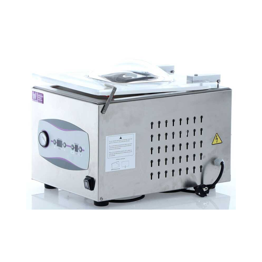 Makinë paketimi me vakum të tipit kampanë, e cila garanton nxjerrje të ajrit deri në afërsisht 99.8% vakum në pak sekonda, duke ulur oksidimin dhe zhvillimin e mikroorganizmave në ushqime. Pajisja operohet lehtë përmes panelit të kontrollit, ku përdoruesi mund të rregullojë kohën e vakumit dhe kohën e saldimit në mënyrë të saktë sipas materialit që po paketoni