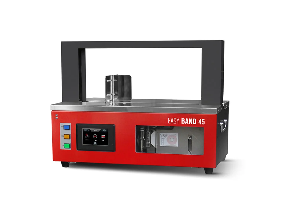 Funksion autonom, i pavarur nga linjat e tjera të prodhimit. Materiale të shumëfishta për bandim: lidhja bëhet me shirit letre ose film plastik Printim direkt mbi shiritat e bandimit Shpejtësi e lartë lidhjeje për produkte të ndryshme. Lidhje e qëndrueshme dhe e sigurt për transport. Përdorim i thjeshtë dhe intuitiv nga operatori. Projektim kompakt që kursen hapësirë në magazinë ose linjë prodhimi.