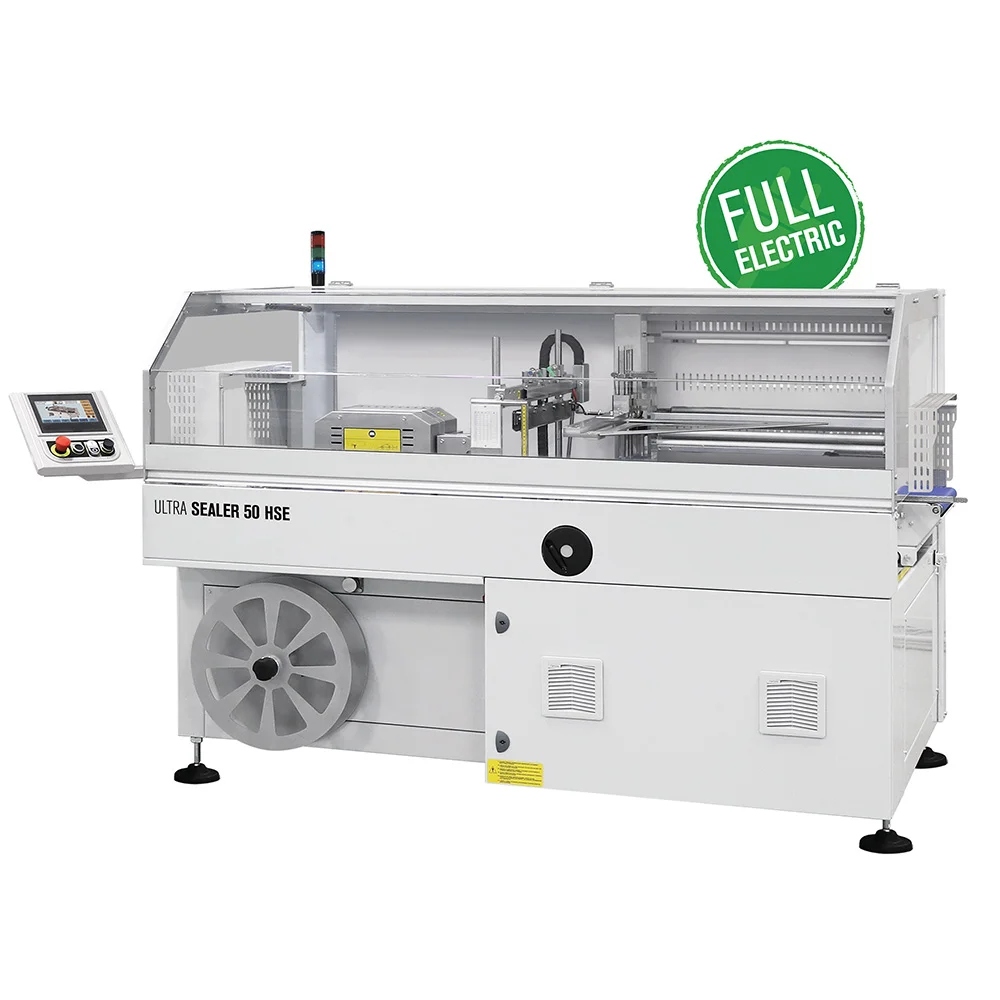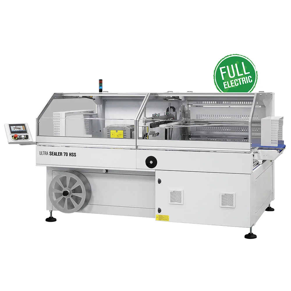 Prodhim i jashtëzakonshëm deri në 7200 paketime/ora, për efikasitet maksimal të linjës së paketimit. Sistem saldimi me cikël të vazhdueshëm (box motion) dhe 3 rripa të kontrolluar nga servomotorë brushless, për stabilitet dhe shpejtësi optimale. Fleksibilitet i lartë në materialet e filmave (poliolefinë / polietilen) dhe mundësia për paketim të produkteve me gjatësi të pakufizuar. Teknologji Full Electric, që ofron konsum të ulët energjie dhe funksionim të qetë. Kontroll PLC me panel grafik dhe monitor 7″ touch (opsional) për programim të lehtë dhe menaxhim të parametrave.