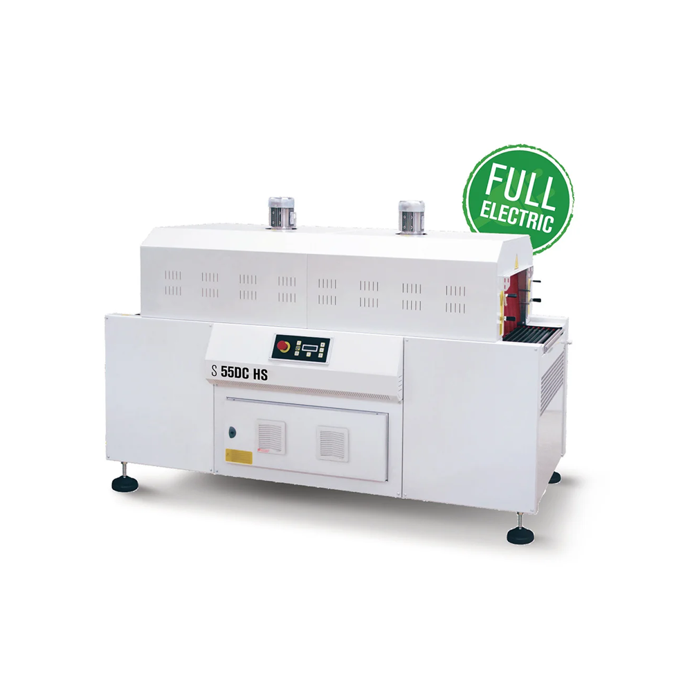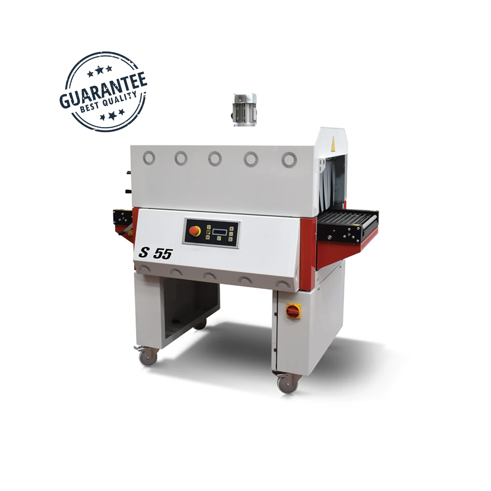 Tuneli S 55 përdor teknologji të ajrit të nxehur për të tkurrur filmat termo‑tkurrës rreth produkteve të paketimit. Ofron menaxhim preciz të procesit—duke përfshirë rregullimin e temperaturës, shpejtësisë së rripit dhe cikleve të punës. Tuneli është projektuar për efikasitet maksimal dhe fleksibilitet në punë me filmat PVC, poliolefinë dhe polietileni deri në trashësi 50 µ.