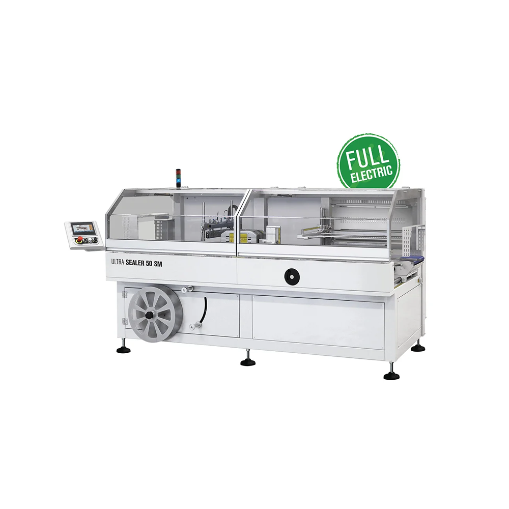 E ndërtuar plotësisht në çelik inox, e pajisur me sistem autodimensionimi që përshtat automatikisht madhësinë e kutisë gjatë ciklit të punës, pa rregullime manuale. Ajo siguron mbyllje të sipërme dhe të poshtme të kutive me përmasa të ndryshme në mënyrë të shpejtë, të saktë dhe të qëndrueshme