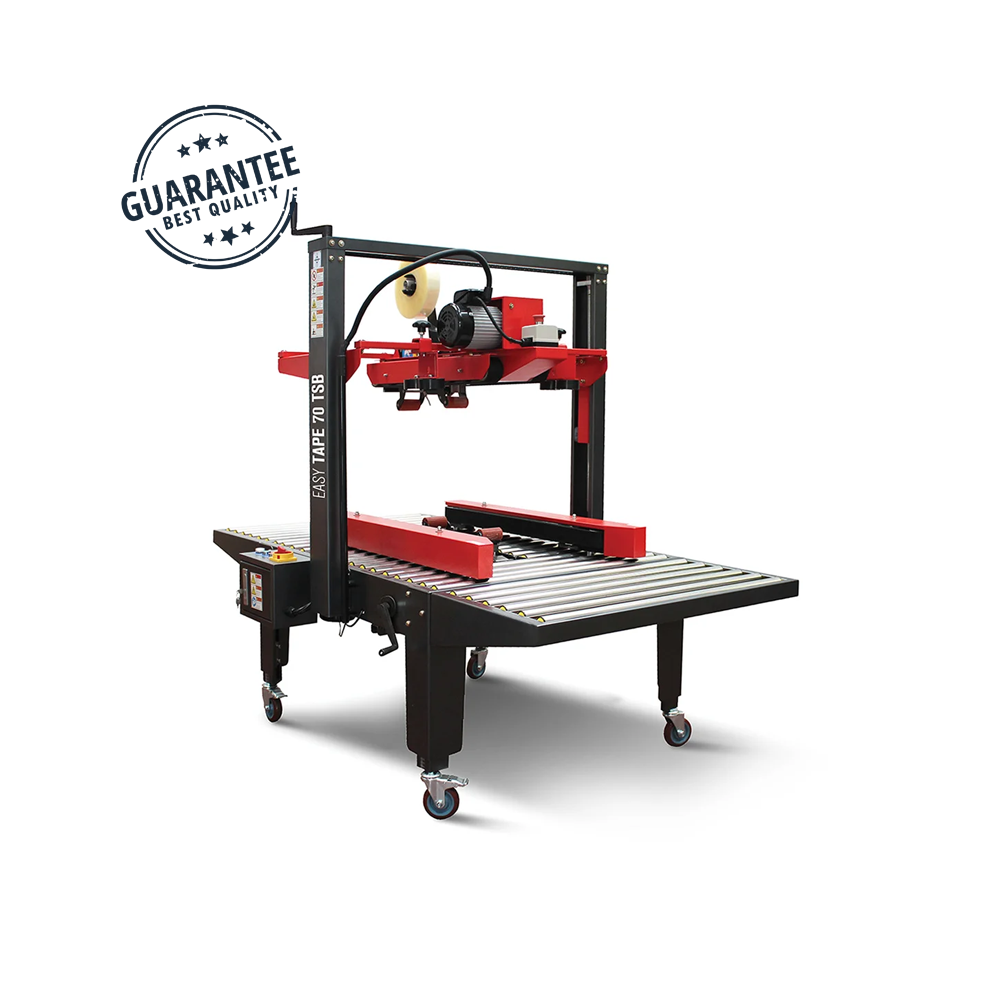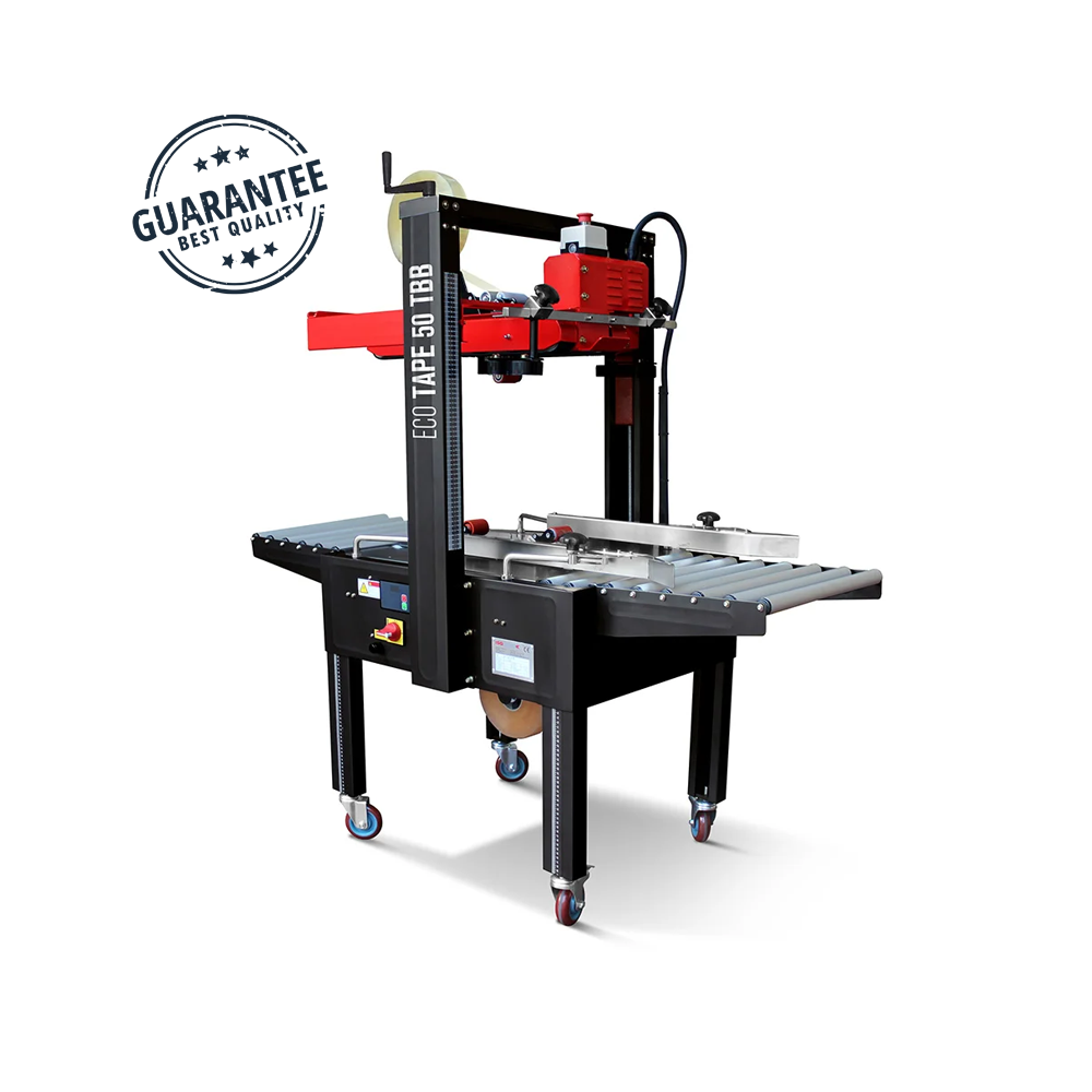makinë semi‑automatike “entry level” për mbylljen e kutive kartoni me shirit vetë‑ngjitës, e projektuar për sigurimin e mbylljes së sipërme dhe të poshtme të kutive në mënyrë të qëndrueshme dhe efikase. Pajisja është e përshtatshme për përdorues jo‑teknikë dhe ofron funksionim të thjeshtë me rregullime minimale.