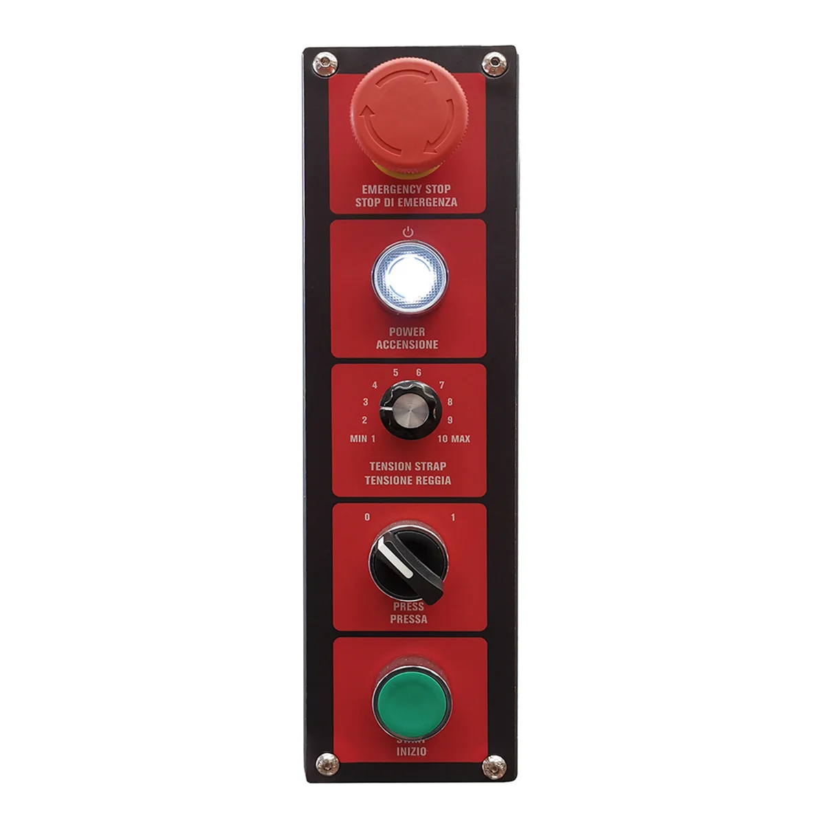 Makinë automatike për lidhjen e paketave me rripa (strapping), dizajnuar për volum të punës mesatar deri të lartë. Ajo përdor motorë DC për çdo funksion kryesor, duke reduktuar komponentët mekanikë dhe duke përmirësuar efikasitetin. Pajisja ka panel kontrolli të rrotullueshëm 180°, që lejon operim nga të dy anët e makinës, dhe një pedal për nisjen e ciklit të lidhjes, duke e bërë ideale për linja prodhimi ose paketim industrial.